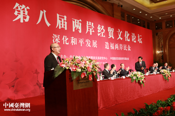 [中國臺灣網(wǎng)]:第八屆兩岸經(jīng)貿(mào)文化論壇由中共中央臺灣工作辦公室海峽兩岸關系研究中心與中國國民黨國政研究基金會共同主辦。與會人士圍繞“深化和平發(fā)展、造福兩岸民眾”這一主題,就和平發(fā)展回顧與前瞻、深化經(jīng)貿(mào)合作、擴大文教交流等三項議題進行研討。[15:04]