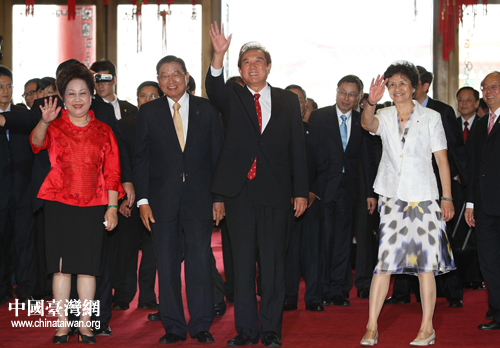 ;鶗(huì)董事長(zhǎng)江丙坤夫婦在臺(tái)北圓山飯店一樓大堂迎接海協(xié)會(huì)會(huì)長(zhǎng)陳云林夫婦。 中國(guó)臺(tái)灣網(wǎng)發(fā)