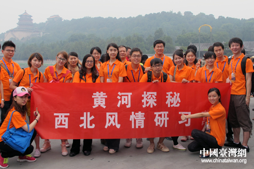 2012年“黃河探秘—西北風(fēng)情研習(xí)營(yíng)”交流活動(dòng)于8月11日在北京正式啟動(dòng),全體成員在開營(yíng)儀式上合影留念。(中國(guó)臺(tái)灣網(wǎng) 張潔 攝)