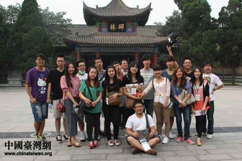 兩岸學(xué)子在碑林博物館前合影留念。(中國臺灣網(wǎng) 黃艷艷 攝)
