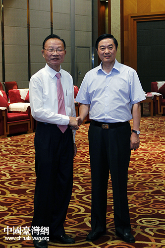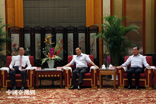中共四川省委書記劉奇葆,中共中央臺辦、國務(wù)院臺辦主任王毅,中共四川省委副書記、省長蔣巨峰等,18日下午在成都會見了前來參加第三屆兩岸縣市“雙百論壇”的臺灣縣市民意代表。(中國臺灣網(wǎng) 楊麗 攝)