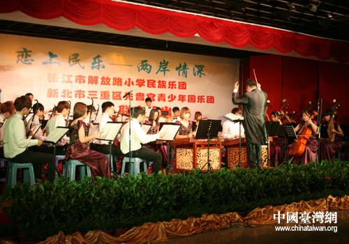 中國臺灣網(wǎng)8月23日鎮(zhèn)江消息 8月22日,來自臺灣新北市三重區(qū)先嗇宮青少年國樂團(tuán)與鎮(zhèn)江市解放路小學(xué)民族樂團(tuán)在鎮(zhèn)江市工人文化宮聯(lián)合舉辦了一場“戀上民樂——兩岸情深”海峽兩岸青少年民樂交流演出。鎮(zhèn)江市副市長曹麗虹與江蘇省、鎮(zhèn)江市有關(guān)部門領(lǐng)導(dǎo),鎮(zhèn)江市臺屬聯(lián)誼會會員,應(yīng)邀到鎮(zhèn)江的常州市臺商代表及鎮(zhèn)江市解放路小學(xué)部分師生代表共300多人一同欣賞了這場精彩的演出。