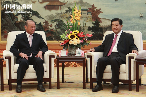 8月30日下午,中共中央政治局常委、全國政協(xié)主席賈慶林在人民大會堂會見了世界臺灣商會聯(lián)合總會參訪團(tuán)全體成員。(中國臺灣網(wǎng)發(fā))
