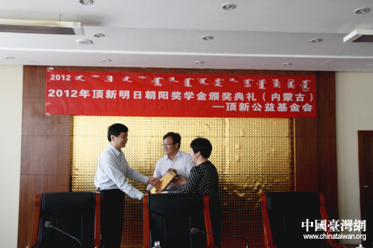 中國(guó)臺(tái)灣網(wǎng)9月12日內(nèi)蒙古克什克騰旗報(bào)道 “今年我被內(nèi)蒙古農(nóng)業(yè)大學(xué)錄取,但近幾年牧區(qū)嚴(yán)重的災(zāi)情讓我的家庭無(wú)力承擔(dān)家中三名子女的教育費(fèi)用,幸運(yùn)的是我獲得了頂新明日朝陽(yáng)三等獎(jiǎng)學(xué)金,解了我家的燃眉之急,也圓了我的大學(xué)夢(mèng)”。和蒙古族姑娘蘇日亞一樣,在臺(tái)資頂新公益基金會(huì)“頂新明日朝陽(yáng)獎(jiǎng)學(xué)金”資助下圓夢(mèng)的,還有內(nèi)蒙古赤峰市克什克騰旗70位家境貧寒的學(xué)子。2007年以來(lái),頂新公益基金會(huì)已先后出資100余萬(wàn)元,資助了300多名克什克騰旗的貧困大學(xué)生。2012年9月,頂新公益基金會(huì)的代表再度來(lái)到克什克騰旗,將希望帶到了蒙古包。