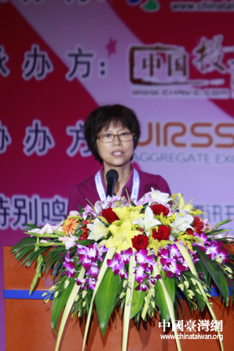 中國(guó)互聯(lián)網(wǎng)協(xié)會(huì)副秘書(shū)長(zhǎng)孫永革女士發(fā)表致辭。(中國(guó)臺(tái)灣網(wǎng) 王怡然 攝)