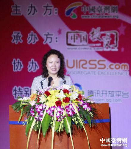 大賽主辦方中國臺灣網(wǎng)總經(jīng)理兼總編輯劉曉輝女士發(fā)表致辭。(中國臺灣網(wǎng) 王怡然 攝)
