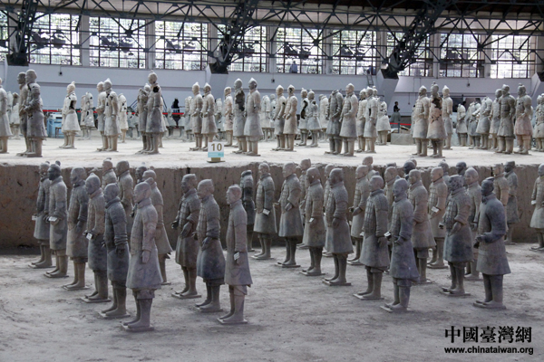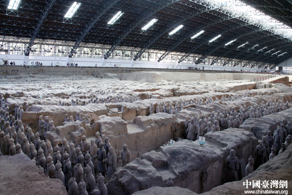 目前挖掘出的規(guī)模最大的秦始皇兵馬俑一號坑。(中國臺灣網(wǎng) 芮益芳 攝)