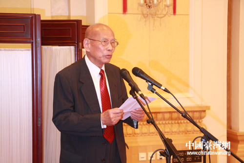 黃埔軍校同學(xué)會(huì)會(huì)長(zhǎng)林上元在招待會(huì)上致辭。(中國(guó)臺(tái)灣網(wǎng) 齊曉靖 攝)