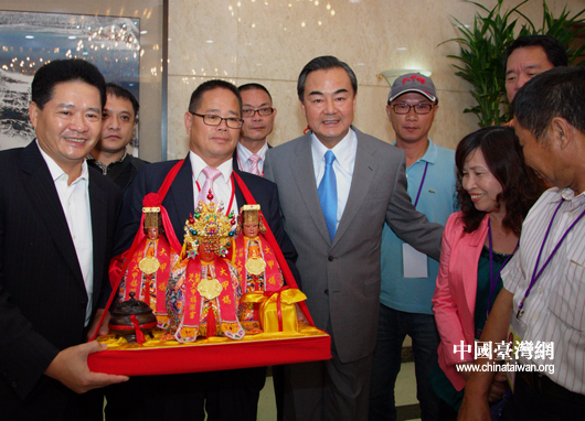 9月26日,中共中央臺(tái)辦、國(guó)務(wù)院臺(tái)辦主任王毅在北京會(huì)見以鄭銘坤先生為團(tuán)長(zhǎng)的臺(tái)灣媽祖聯(lián)誼會(huì)大型代表團(tuán)。(中國(guó)臺(tái)灣網(wǎng)發(fā) 陳筠攝)