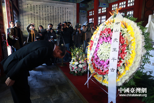 16日下午,臺灣海基會董事長林中森率;鶗(jīng)貿文化參訪團,赴北京香山碧云寺拜謁孫中山衣冠冢。(中國臺灣網(wǎng) 陳佳慧 攝)