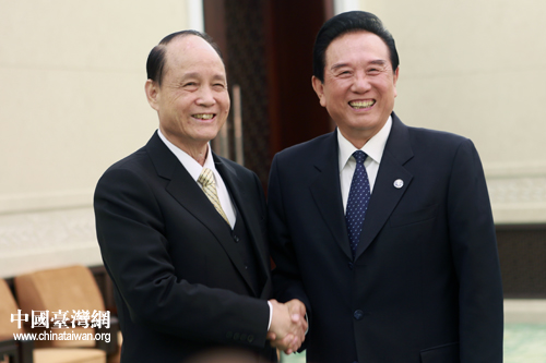 16日晚,海協(xié)會會長陳云林(右)會見了首次來大陸的臺灣海基會新任董事長林中森一行。(中國臺灣網(wǎng) 陳佳慧 攝)