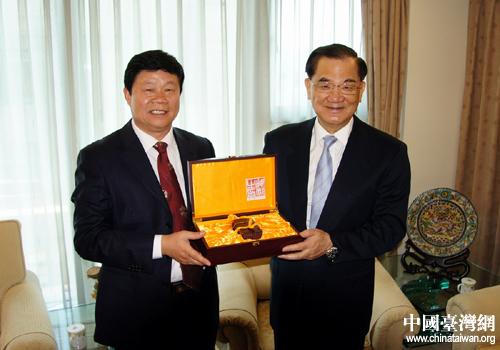 山東省副省長賈萬志與中國國民黨榮譽主席連戰(zhàn)會晤。(圖片來源:山東省臺辦)