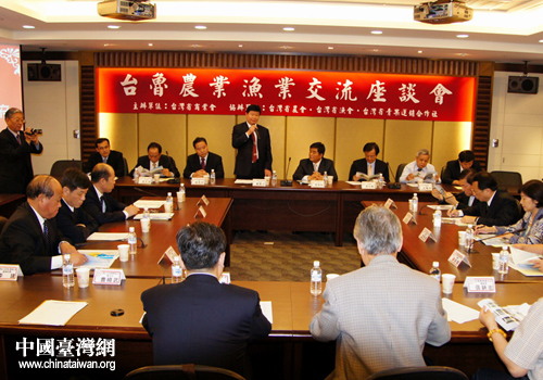 魯臺農(nóng)業(yè)漁業(yè)交流座談會現(xiàn)場。(圖片來源:山東省臺辦)