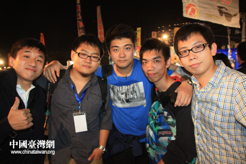 北京交通大學(xué)學(xué)生與臺(tái)灣學(xué)生(左一劉韋億、右二徐伯淳)在臺(tái)南大東夜市(中國(guó)臺(tái)灣網(wǎng) 王文英 攝)