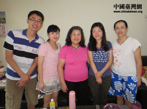 中國(guó)地質(zhì)大學(xué)學(xué)生吳桐在臺(tái)中與中興大學(xué)學(xué)生陳秋樺的姐姐、外婆等在一起(中國(guó)臺(tái)灣網(wǎng) 發(fā))