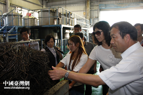 參訪團成員參觀仙草加工流程。(中國臺灣網(wǎng) 于斯文 攝)