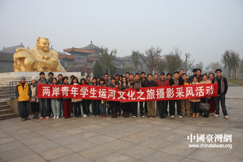 兩岸青年學(xué)生在運(yùn)河畔的石家大院廣場(chǎng)合影。(中國(guó)臺(tái)灣網(wǎng)發(fā) 王亮攝)