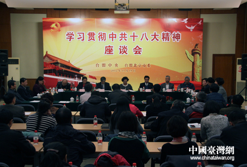 臺(tái)盟中央、臺(tái)盟北京市委11月19日下午在京聯(lián)合舉辦學(xué)習(xí)貫徹中共十八大精神座談會(huì)。(中國(guó)臺(tái)灣網(wǎng) 王怡然 攝)
