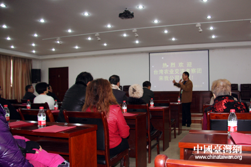 湖北同星農(nóng)業(yè)有限公司副總裁劉成做專題報(bào)告,與臺(tái)灣農(nóng)業(yè)專家進(jìn)行技術(shù)交流。(中國(guó)臺(tái)灣網(wǎng) 黃艷艷 攝)