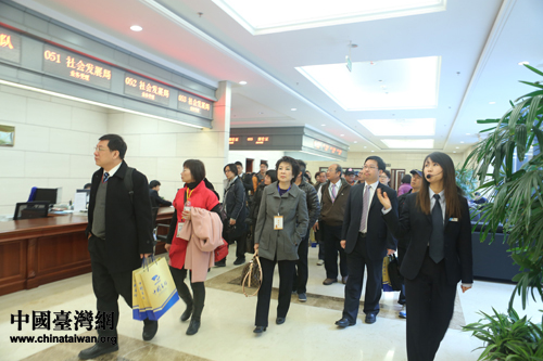 兩岸中小企業(yè)代表團(tuán)考察武漢經(jīng)濟(jì)開發(fā)區(qū)政務(wù)服務(wù)中心。(中國臺(tái)灣網(wǎng) 馬萌 攝)