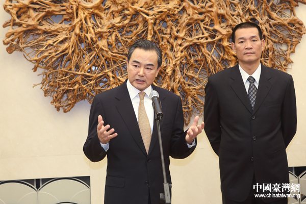 中共中央臺辦、國務(wù)院臺辦主任王毅今天下午在北京人民大會堂會見了臺灣鄉(xiāng)鎮(zhèn)市民代表會聯(lián)合總會蔡詠锝一行。(中國臺灣網(wǎng) 于斯文 攝)