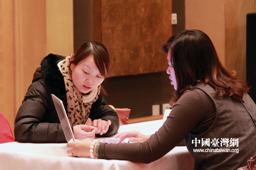 21日下午在京舉行的臺灣文創(chuàng)精品館商機貿(mào)易洽談推介會上,不少臺灣商家與大陸廠商一起洽談合作、招募商機。(中國臺灣網(wǎng) 楊麗 攝)