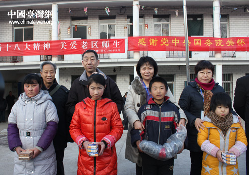 中國臺灣網(wǎng)1月6日消息 1月5日,“北京臺灣城”28名員工在董事長郭瑞先帶領下,冒著數(shù)九嚴寒從北京驅(qū)車到位于太行山深處的革命老區(qū)阜平縣,向該縣龍泉關鎮(zhèn)小學300余名師生贈送書刊、筆記本和手套,又到駱駝灣村為每家每戶送去了嶄新的棉被、圍巾等過冬物資。西柏坡精神研究會會長王彬生和毛澤東風范詞典副主編丁朝真共同參加。