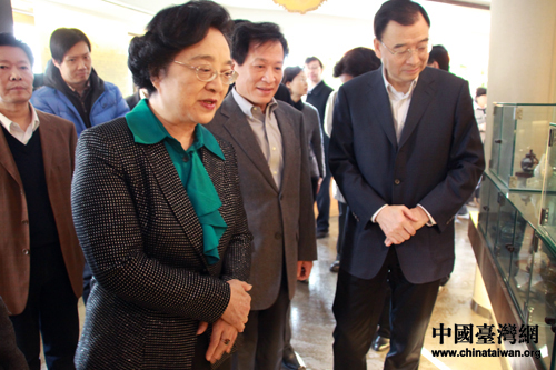 全國(guó)政協(xié)副主席、臺(tái)盟中央主席林文漪等參觀欣賞天福茶文化館內(nèi)的精美茶具。(中國(guó)臺(tái)灣網(wǎng) 王怡然 攝)