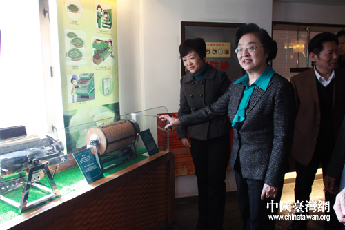 林文漪等參觀天福茶文化館內(nèi)的茶葉生產(chǎn)加工模型。(中國(guó)臺(tái)灣網(wǎng) 王怡然 攝)