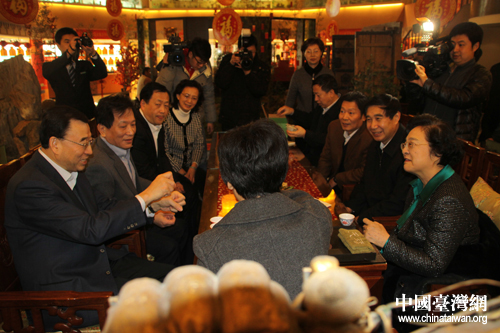 中國(guó)臺(tái)灣網(wǎng)1月16日北京消息 在新春佳節(jié)即將到來(lái)之際,16日上午,全國(guó)政協(xié)副主席、臺(tái)盟中央主席林文漪一行走訪慰問了位于北京市東城區(qū)的著名臺(tái)資企業(yè)“天福茗茶”,與企業(yè)代表座談,并向他們致以新春的問候。