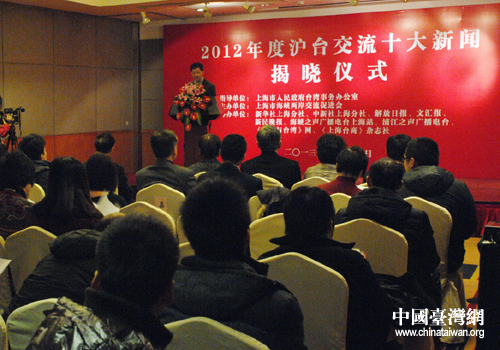 2012年度滬臺(tái)交流十大新聞揭曉儀式現(xiàn)場。(上海市臺(tái)辦 葛鳳章 攝)