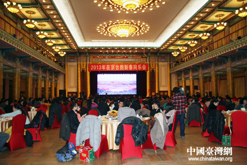 臺盟中央、全國臺聯(lián)今(25)日在京共同舉辦2013年在京臺胞新春同樂會。在京定居的臺胞代表、在京投資經(jīng)商的臺灣企業(yè)界人士、在京求學(xué)的臺灣學(xué)生與首都各界300余人歡聚一堂,共敘親情、友情,喜迎新春佳節(jié)。(中國臺灣網(wǎng) 王怡然 攝)