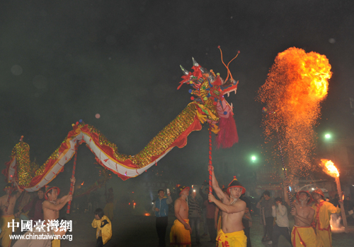 桂臺兩地“雙炮”互動的形成,是桂臺多年交流的厚積薄發(fā)。2009年賓陽與鹽水區(qū)開始接觸,雙方發(fā)現(xiàn),賓陽炮龍和鹽水蜂炮雖遠同源,盡管二者制作、活動方式等各具風格,不盡相同,但意含是一樣的,都是人民祈安求福的一項活動,而且都在春節(jié)期間舉辦,炮龍在正月十一,蜂炮在正月十五。
