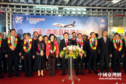 2013年2月9日起,花蓮啟動(dòng)每周六由山東航空定期往返花蓮與濟(jì)南客運(yùn)包機(jī)直飛。濟(jì)南至花蓮航班的開(kāi)通,標(biāo)志著魯臺(tái)兩地的交流更加便利。(中國(guó)臺(tái)灣網(wǎng)、山東航空公司聯(lián)合報(bào)道)