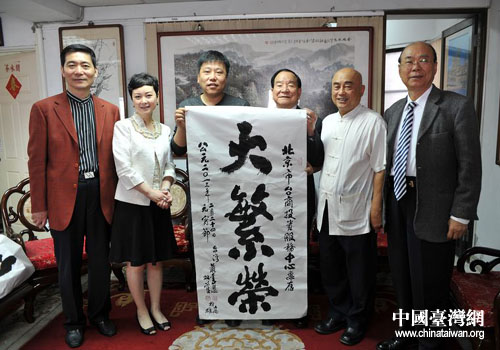 中國臺灣網(wǎng)2月26日高雄消息 日前,應(yīng)中華海峽兩岸企業(yè)交流協(xié)會的邀請,由北京市臺辦公室副巡視員杜德平率領(lǐng)的“北京特色周”參展團(tuán),在高雄舉辦了“京臺兩岸書畫家交流筆會”。程茂全、譚軍立、王靜和康景文、蕭季慧、楊濤、洪塔美等京臺書畫名家參加了交流筆會。