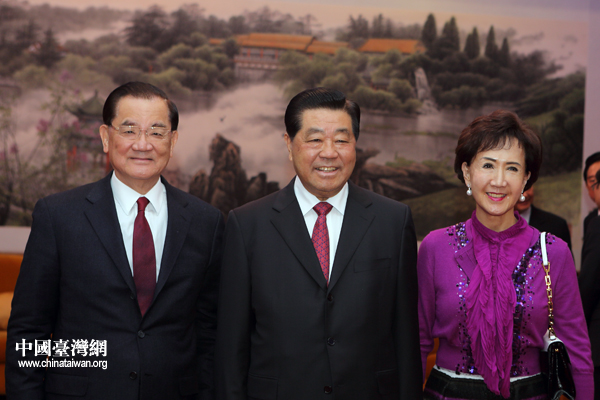 2月26日下午,全國政協(xié)主席賈慶林在北京釣魚臺國賓館會見中國國民黨榮譽主席連戰(zhàn)一行。(中國臺灣網(wǎng) 陳佳慧 攝)