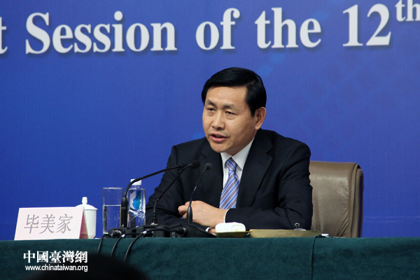 十二屆全國人大一次會(huì)議11日下午在梅地亞中心舉行記者會(huì),農(nóng)業(yè)部總經(jīng)濟(jì)師、辦公廳主任、新聞發(fā)言人畢美家在回答臺(tái)灣記者有關(guān)兩岸農(nóng)業(yè)交流的問題時(shí)做以上表示。