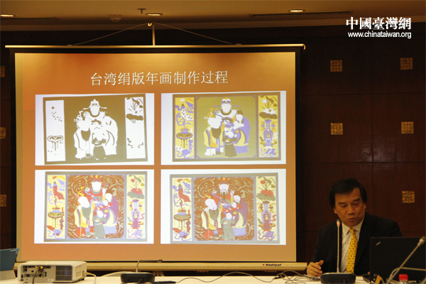 李焯然教授介紹臺(tái)灣年畫(huà)的技術(shù)創(chuàng)新。(中國(guó)臺(tái)灣網(wǎng) 張潔 攝)
