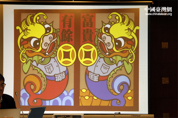 圖為題材創(chuàng)新的臺(tái)灣年畫(huà)。(中國(guó)臺(tái)灣網(wǎng) 張潔 攝)