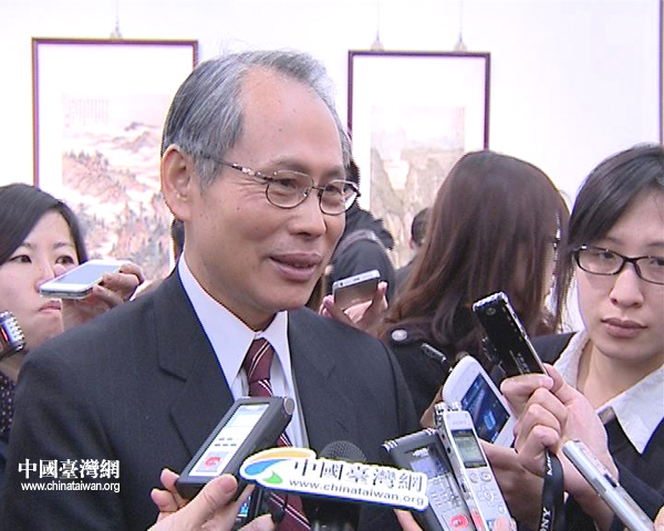 臺灣文化會館基金會執(zhí)行長蘇進強在畫展開幕式上接受媒體采訪(中國臺灣網 董憲超 攝)