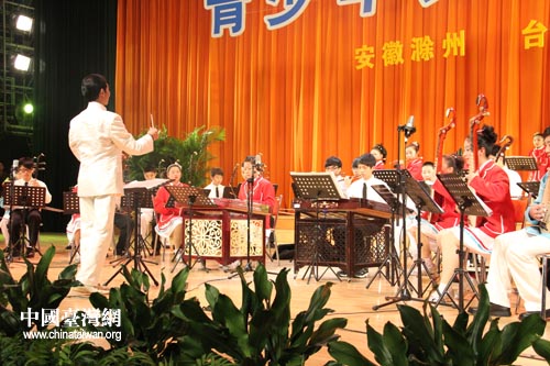 中國臺灣網(wǎng)4月9日滁州消息 日前,作為臺灣宜蘭縣文化交流團(tuán)來滁洲市開展文化藝術(shù)交流活動重頭戲的兩岸青少年民族音樂會在滁州大劇院隆重舉行。滁州市人大副主任張盡忠,市政協(xié)副主席孫敏民、高遷,在滁臺商、隨團(tuán)來訪的臺灣客人同熱情好客的滁州市民和民族音樂愛好者一起觀看了演出。海峽兩岸的青少年以他們對中華民族音樂的理解,用精湛的演奏技藝,為滁州人民奉獻(xiàn)了一臺豐富多彩的民族音樂盛宴。
