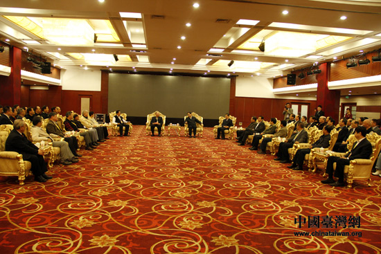 4月10日下午,河南省政協(xié)主席葉冬松在鄭州會(huì)見(jiàn)了參加癸巳年黃帝故里拜祖大典的臺(tái)灣統(tǒng)派人士和退役將領(lǐng)參訪團(tuán)。(中國(guó)臺(tái)灣網(wǎng) 李丹 攝)