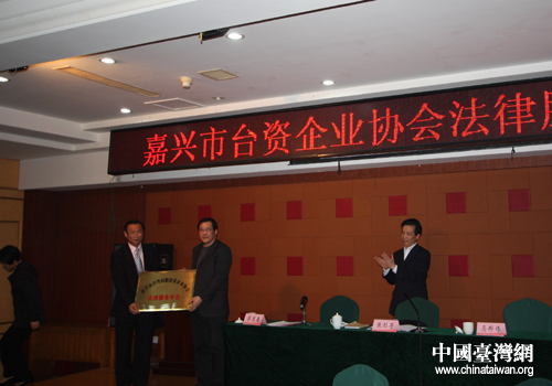 嘉興市臺資企業(yè)協(xié)會法律服務平臺授牌儀式現(xiàn)場。