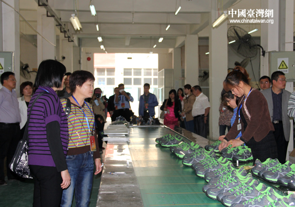 由來自臺灣和大陸的十多家媒體組成的參訪團一行走進河南信陽市唐河臺商投資園區(qū),實地參觀考察了多家臺企在中原地區(qū)投資發(fā)展的情況。圖為記者們參觀臺企生產(chǎn)車間。(中國臺灣網(wǎng) 普燕 攝)