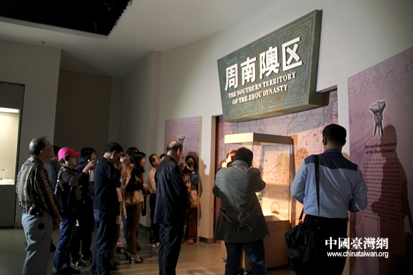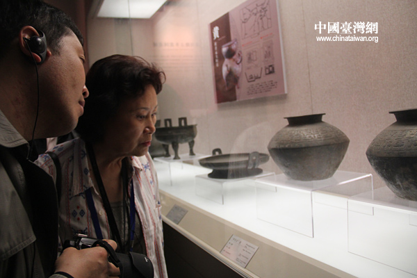 記者們?cè)谧屑?xì)參觀信陽(yáng)博物館內(nèi)珍貴文物。(中國(guó)臺(tái)灣網(wǎng) 普燕攝)