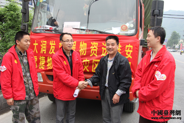 在4·20地震災(zāi)害發(fā)生后,廣大臺灣同胞對雅安伸出了援手。時勇介紹說,很多在川臺企和他們直接聯(lián)系,給予雅安災(zāi)區(qū)援助的有旺旺、康師傅、統(tǒng)一、大潤發(fā)等臺資企業(yè),這些企業(yè)在第一時間克服山區(qū)道路險惡的困難,連夜將群眾急需的棉被、食品等物資運抵災(zāi)區(qū)。