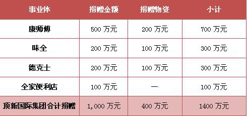 截止目前,頂星國際集團旗下康師傅、味全、德克士以及全家便利店已累計向地震災(zāi)區(qū)捐助1400萬元現(xiàn)金和物資。