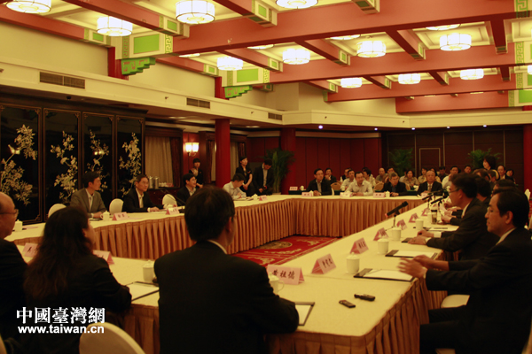 在兩岸企業(yè)家峰會秘書處,張志軍與在江蘇投資的臺商代表進行了座談,了解臺資企業(yè)經(jīng)營情況,聽取他們對兩岸產(chǎn)業(yè)和企業(yè)合作的意見。