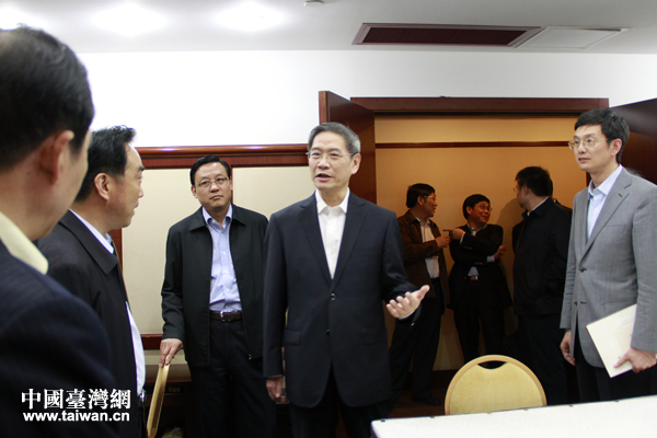 5月16日,中共中央臺辦、國務院臺辦主任張志軍到兩岸企業(yè)家峰會秘書處看望工作人員。(中國臺灣網(wǎng) 楊麗 攝)