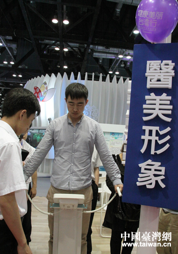 展會現(xiàn)場體驗(yàn)健康檢查的大陸民眾。醫(yī)療健檢已經(jīng)成為大陸民眾赴臺觀光的熱門類型(中國臺灣網(wǎng) 王偉 攝)
